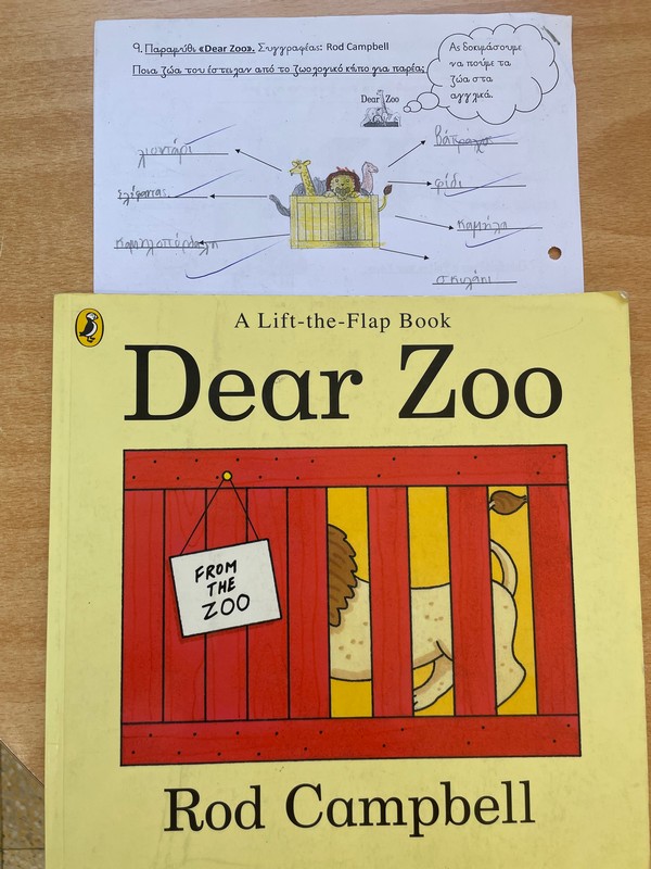 Θεματική ενότητα "Ζώα". Συνδιδασκαλία στο παραμύθι "Dear zoo".